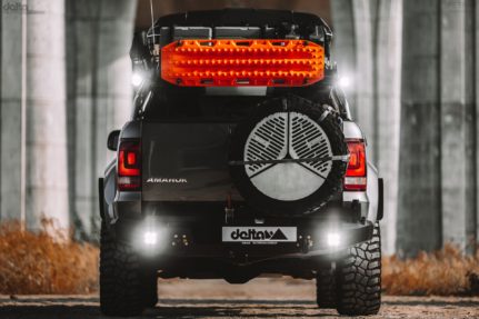 Může být vybaven například našimi kovanými ráfky LEGACY FORGED či oblíbenými zátěžovými offroad ráfky KLASSIK_Beadlock, KLASSIK nebo WP s pneumatikami od LODER TIRES, MICKEY THOMPSON, COOPER či v neposlední řadě BFGOODRICH TIRES a dalšími s možností zápisu alternativních rozměrů pneumatik. Homologovaným ochranným předním či zadním rámem, nášlapy z nerezové oceli o průměru 76 mm leštěnými nebo černými, případně také alu ochranou prahů a podvozku. Samozřejmě našimi homologovanými lemy blatníků v barvě vozu či černém matu, rozšířením osy až o 60 mm. Máme pro něj v nabídce několika stupňové zvýšení až o 140 mm díky distančním blokům a delším sportovním tlumičům, pružinami s vyšší nosností v případě potřeby. Také alu střešní nosiče, pořádné navijáky integrované a lovecké o tažné síle až 5,4 t, boxy, toolboxy, posuvná dna korby, rolety, hardtopy, vložky korby, přídavné LED světlomety VISIONX , PIAA, přídavné baterie, stany, markýzy, výfuky, plynové vzpěry kapoty a mnoho dalšího vybavení či jiné ráfky s alternativními velikostmi pneumatik od delta4x4. To vše a jiné k dostání u delta4x4.